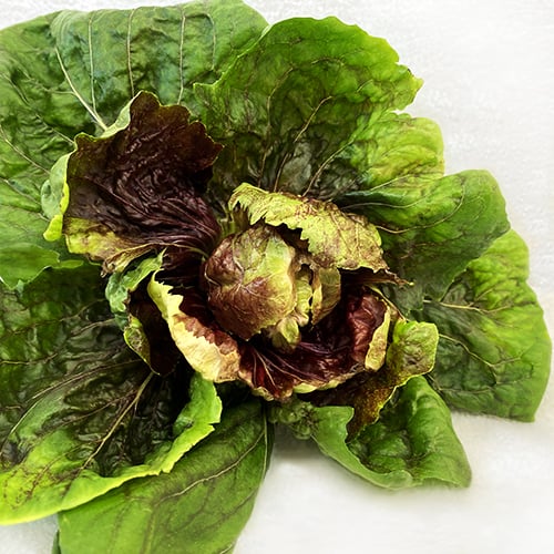 🥬 Harvest: For ongoing harvest, snip the outer leaves just above the base of the plant once they reach 4 inches tall to let the inner leaves continue to grow. Don’t cut more than 1/3 of the plant if you want it to keep growing. For a one-time harvest and to get the inner head to develop, harvest when the head is about 3-4 inches in diameter and is a nice burgundy color. If left to grow the center head, the outer leaves may pull away from the head slightly, but they are still tasty! Harvest from the base.