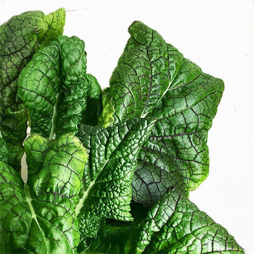 Red Mustard leaves are a beautiful deep green with red veins. Mature leaves may also take on a reddish hue. Mustard leaves are an excellent source of vitamins C and E, fiber, folate, calcium, iron, magnesium, potassium, and B6. The calcium in mustard leaves ranks among the highest in bioavailability. Similar to other plants in the Brassica genus, the sulfur-containing glucosinolate compounds in Red Mustard have potent anticancer and health promoting properties.