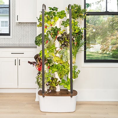 Under founders Conner Tidd and Kevin Jakiela, Just Vertical is a company on a mission to make the world more sustainable. That’s why their Eve systems are made from recycled materials and utilize hydroponic technology for soil-free plant growth. Their models are a great option due to their built-in LED grow lights feature and that the vertical garden can accommodate personal seeds.