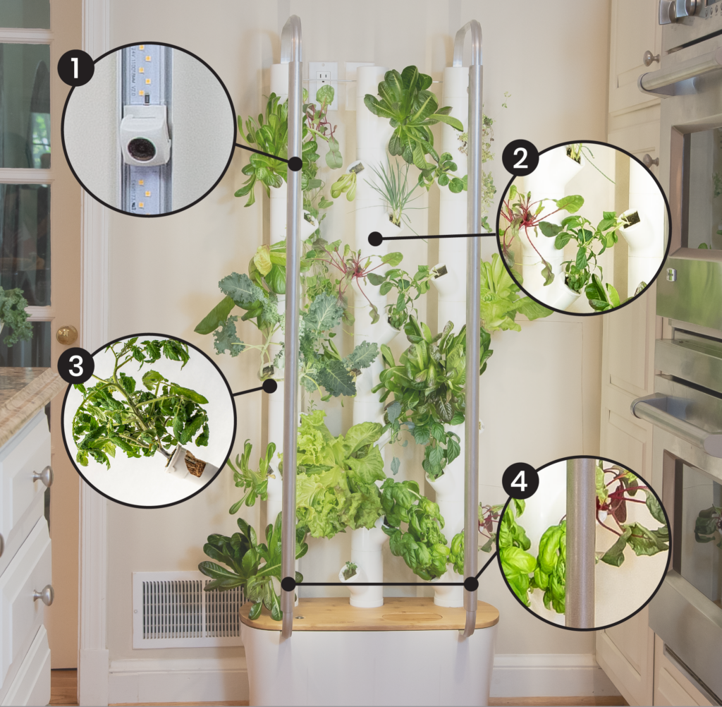 - Kelby™, Gardyn’s AI smart assistant, reads sensor updates to provide timely guidance and support