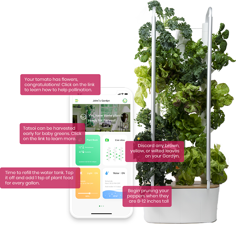 - Alerts conveniently delivered via the Gardyn mobile app