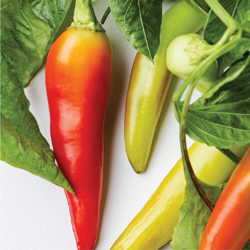 Individual Banana Peppers can grow up to 8-9 inches in length. As they ripen, peppers change from yellowish-green, to yellow, and finally to red. The longer they are allowed to ripen, the sweeter they get! Similar to other C.annuum peppers, Banana Peppers provide a great source of Vitamin C (which increases with ripening) along with carotenoids (especially pro-Vitamin A). Banana Peppers also deliver healthy flavonoids such as quercetin and luteolin, which have anti-inflammatory properties.